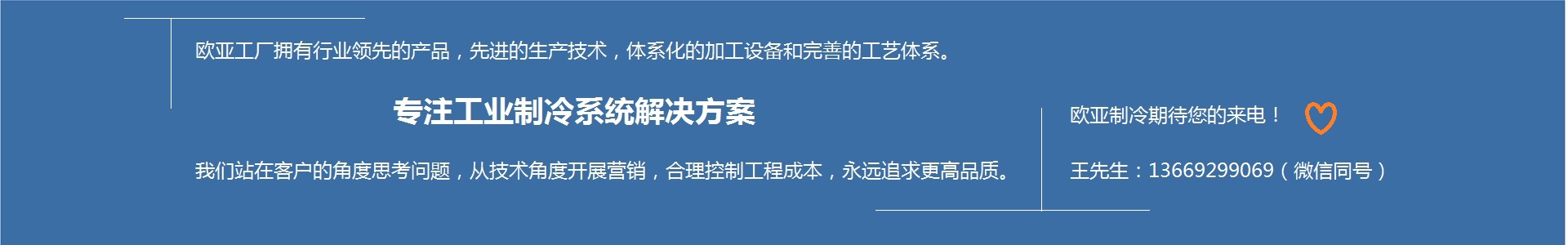 公司集工業冷水機組,工業冷卻系統,動態冰漿蓄冷設備,冷庫設備機組,低溫空氣源熱泵機組,螺桿式冷水機組,變頻冷水機組,乳制品生產制冷設備,食品冷凍機組等產品的研發、制造、系統配置及安裝服務。服務領域涉及新能源、航空航天、空調凈化、工業冷水、冷庫工程、乳品及飲品加工、生物技術、電子科技、食品速凍、農副產品及中藥材烘干等多個領域。具有建筑機電安裝專業承包資質,安全生產許可資質等。為客戶提供高性價比的服務是我們始終不渝的態度。歐亞制冷期待與您合作!業務咨詢電話:13669299069!